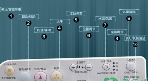 比如上厕所后,需要手动单击操作面板上的洗涤功能指示灯进行控制。