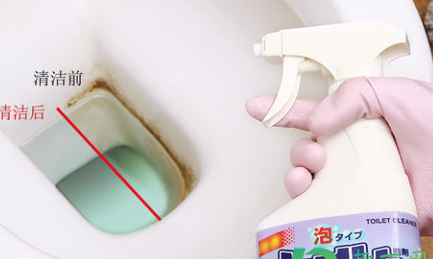 如果是液体洁厕灵,按适当比例稀释后,将其喷洒在马桶上,可以用原始液体喷洒严重的污渍。静置1分钟,等待污渍溶解。用厕所用具刷洗沾污的表面,并用水冲洗干净;如果污渍太重,请重复上述操作并增加浸泡时间。清洁后,马桶如新一样干净。