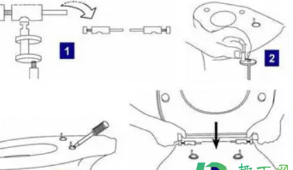 2.将附件中的两个螺钉首先分别插入方形闩锁,然后套在马桶盖两边的铁轴。
